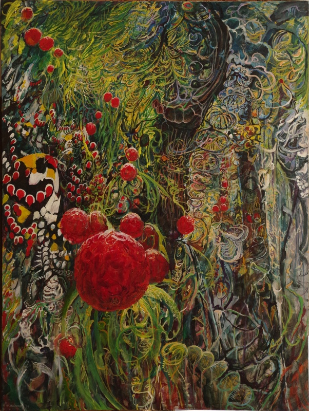 Incidentally; I began the painting before I went to Spain (including Barcelona) for a few weeks; When I returned and finished the painting my head was swimming with Gaudi; who was inspired by forms found in nature. I wonder if it shows in the painting.