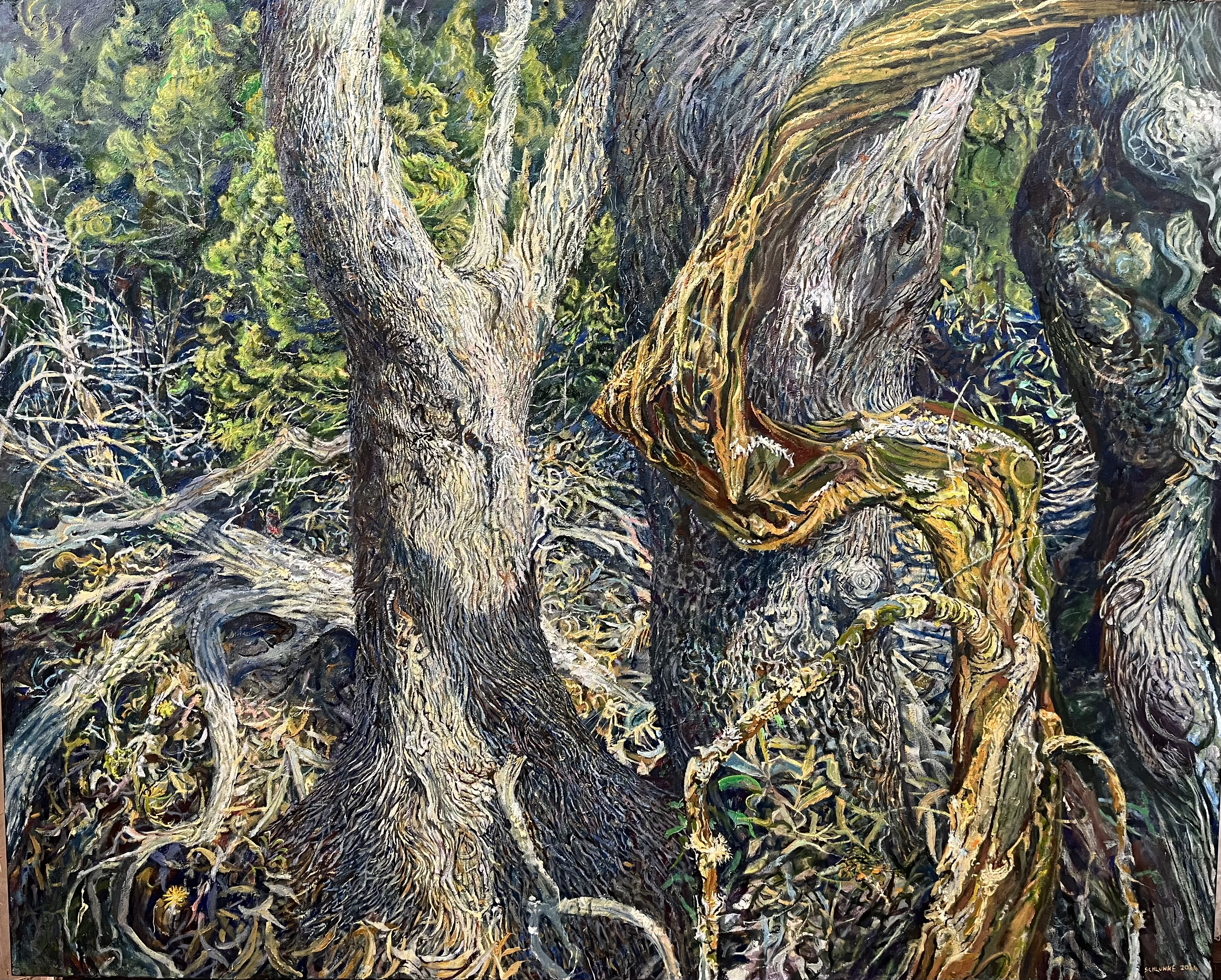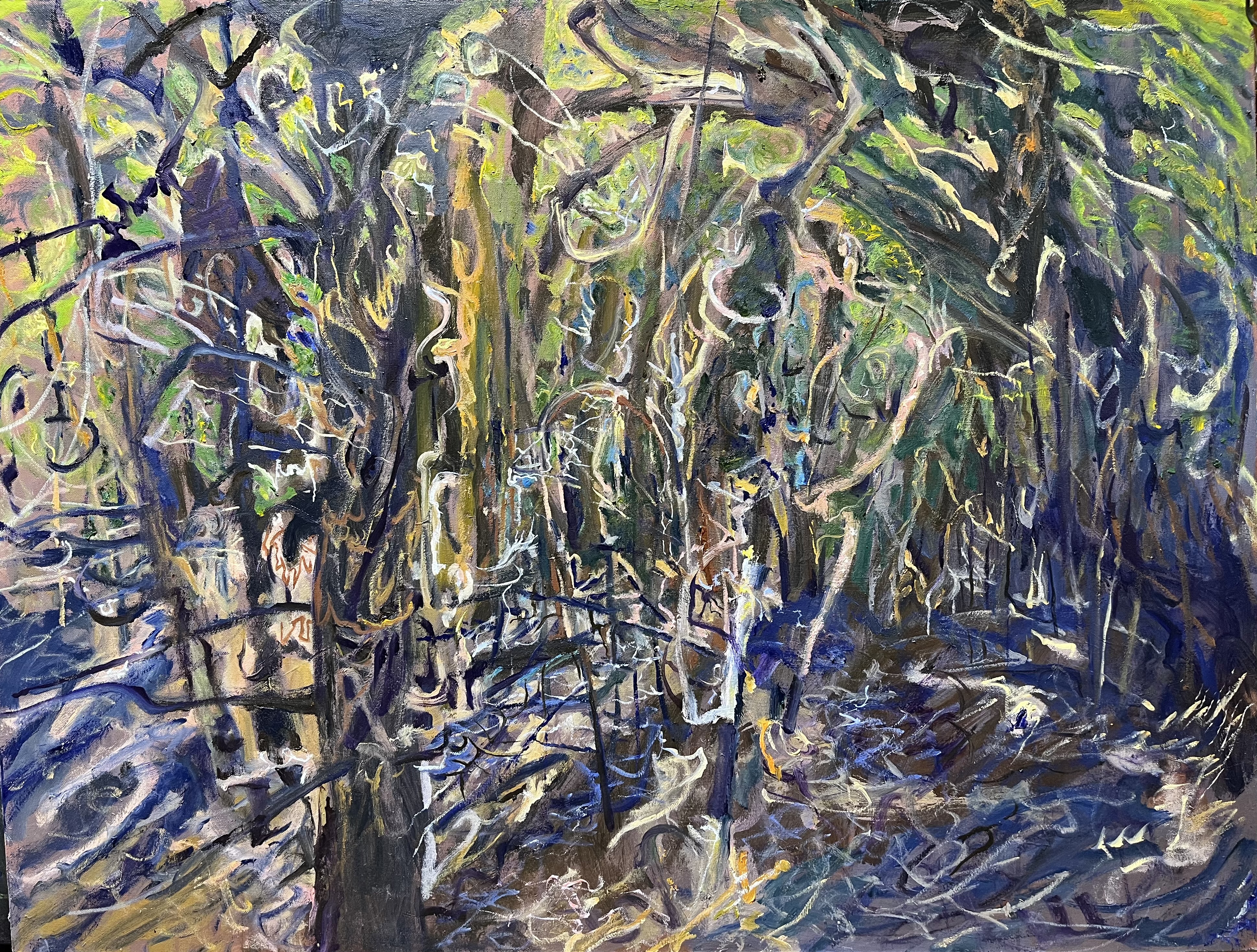 It presented two different modes of visual metaphor ; Can one paint architectural form using foliage and trunk/branch structures. The voice kept telling me; “Yes, you can do it Old Slunk!”